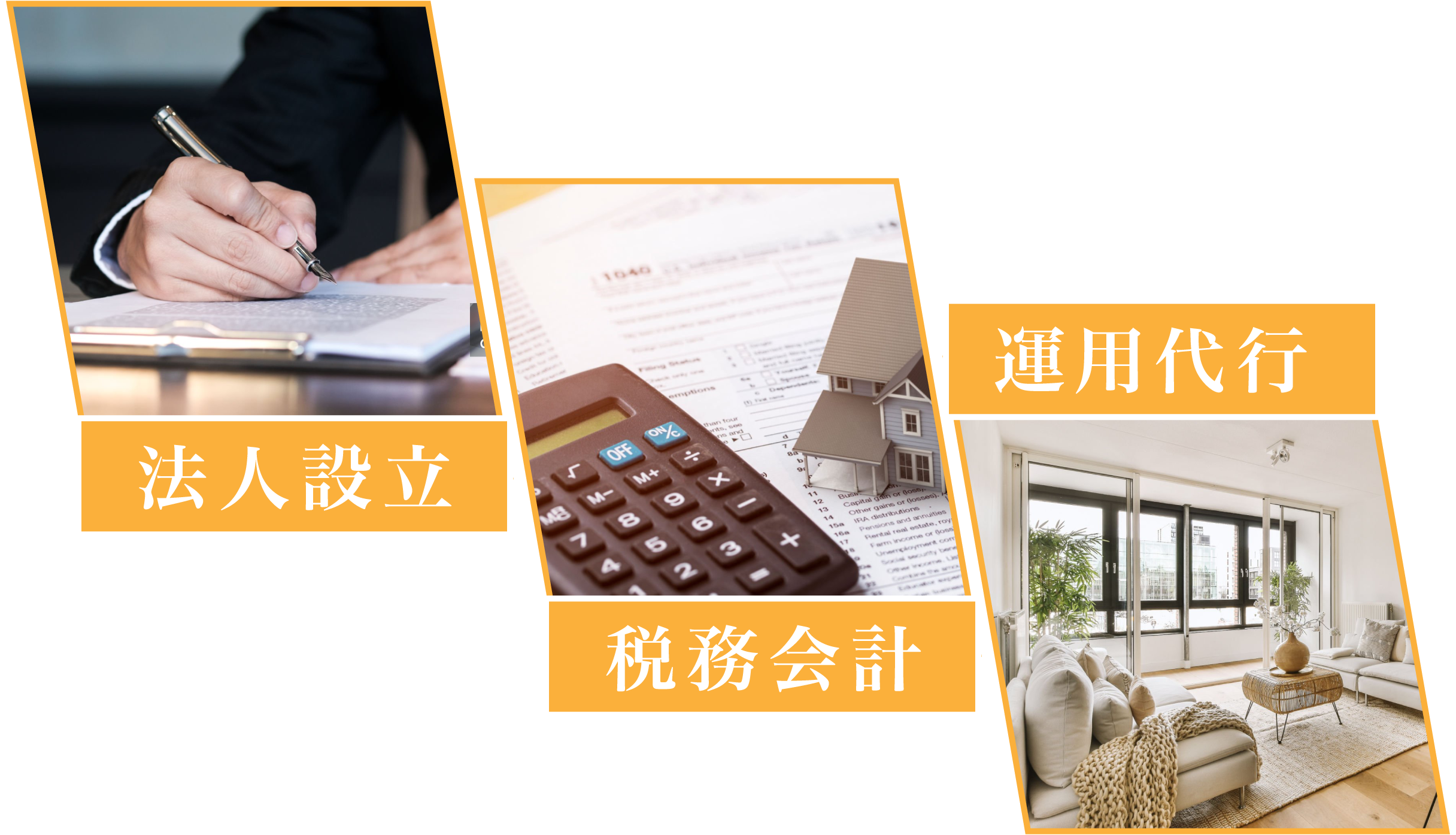 不動産投資をより円滑かつ効率的に進めるため、当社では法人設立・税務申告・物件管理といった関連業務をワンストップで代行しています。